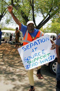The Waste Campaign focuses largely on supporting the emerging waste reclaimers’ or pickers’ movement. With the South African Waste Pickers’ Association (SAWPA), groundWork continues to help waste pickers with organising themselves and developing local strategies for participation in waste management systems. Where dumps are being formalised as landfills, groundWork advocates that waste pickers must formalise or else there is more chance of them being marginalised from the formal waste management system. groundWork and SAWPA were critical in ensuring that waste pickers were included in the National Environment Management Act: Waste Act 2008 as an important part of the waste management system.